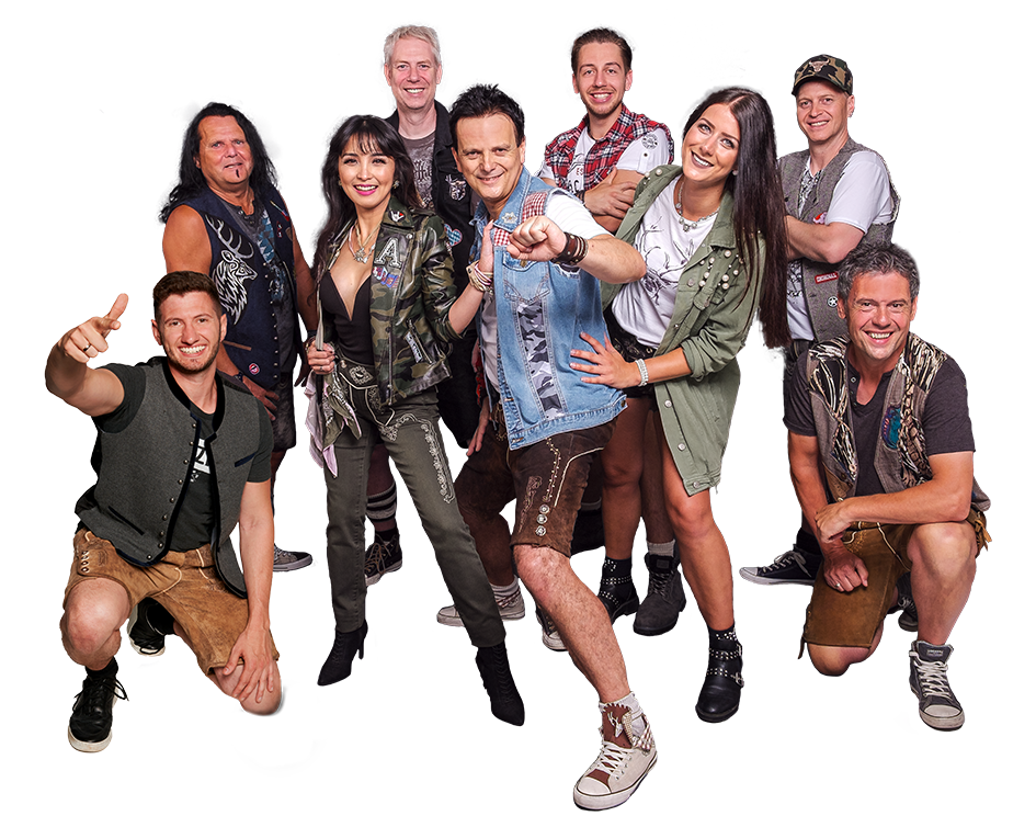 Songs von. ABBA, Bon Jovi, AC/DC, Helene Fischer,Coldplay, DJ Robin, Mia Julia, Die Toten Hosen, Andrea Berg, VanHalen, Jan Delay, Helene Fischer, Andreas Gabalier, Queen, Voxxclub, Udo Jürgens, Schürzenjäger, Avicii, Troglauer, Mickie Krause, DJ Ötzi, Corona, Wolfgang Petry, PUR, Wanda Jackson, Kid Rock, Spider Murphy Gang, Swedish House Mafia, Honk!, Irene Cara, Journey, Joan Jett, Robbie Williams, u.v.m